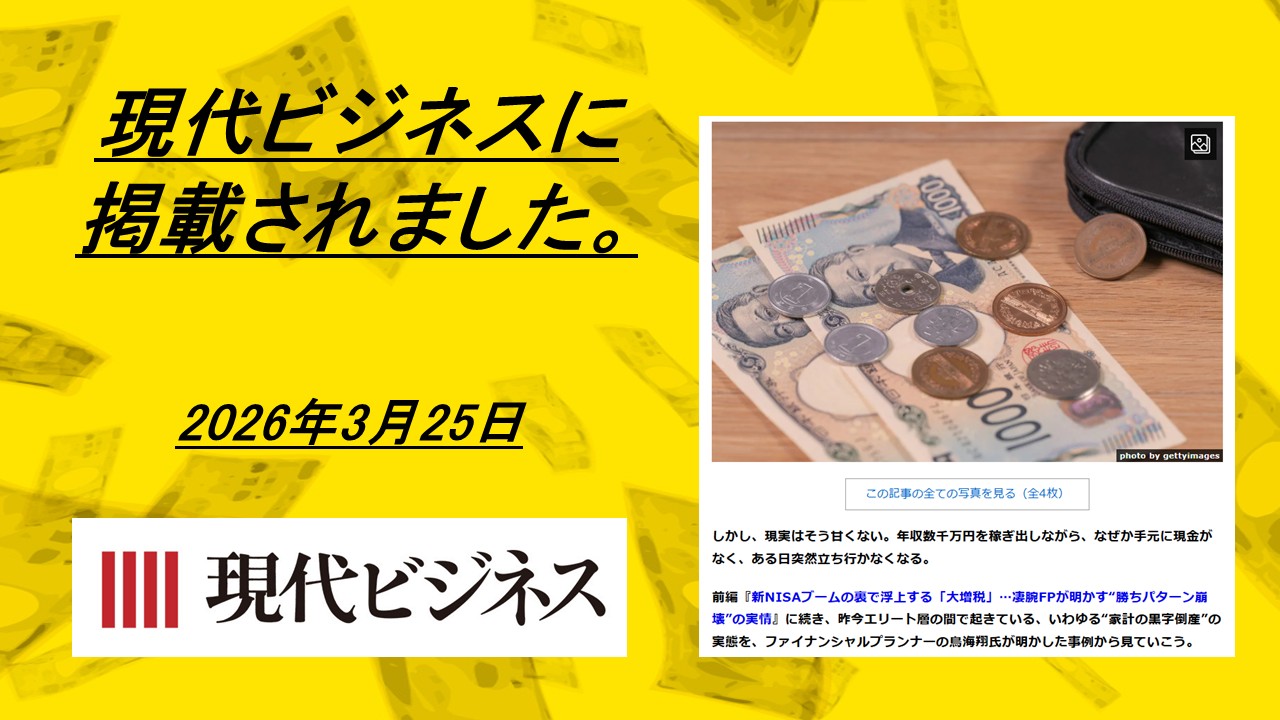 鳥海 翔 の解説記事が、講談社が運営するビジネスメディア「現代ビジネス」内のマネー情報コンテンツ マネー現代 に掲載されました。