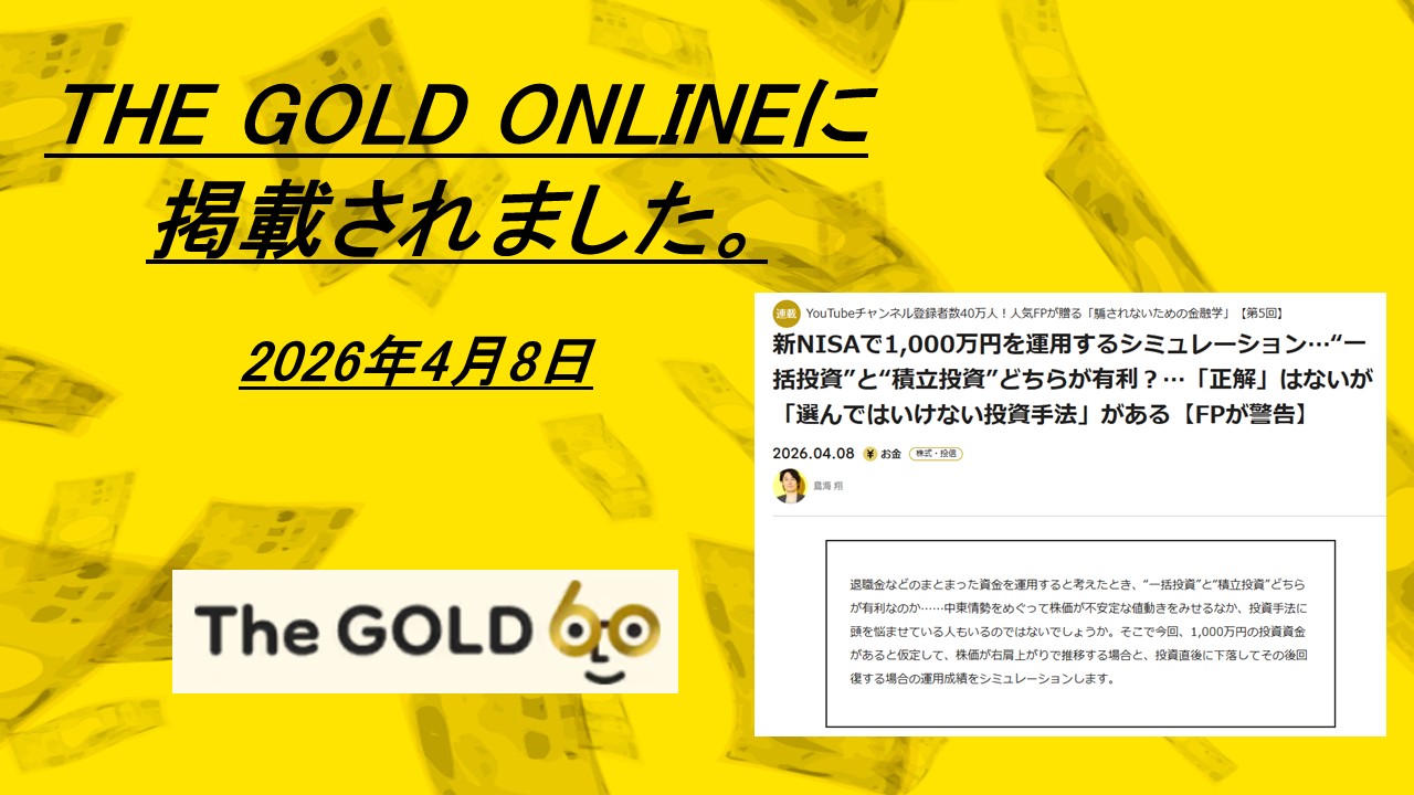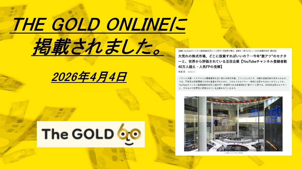 鳥海 翔 の解説記事が、資産形成・資産運用に関する専門情報を発信するメディア 資産形成ゴールドオンライン(THE GOLD ONLINE) に掲載されました。